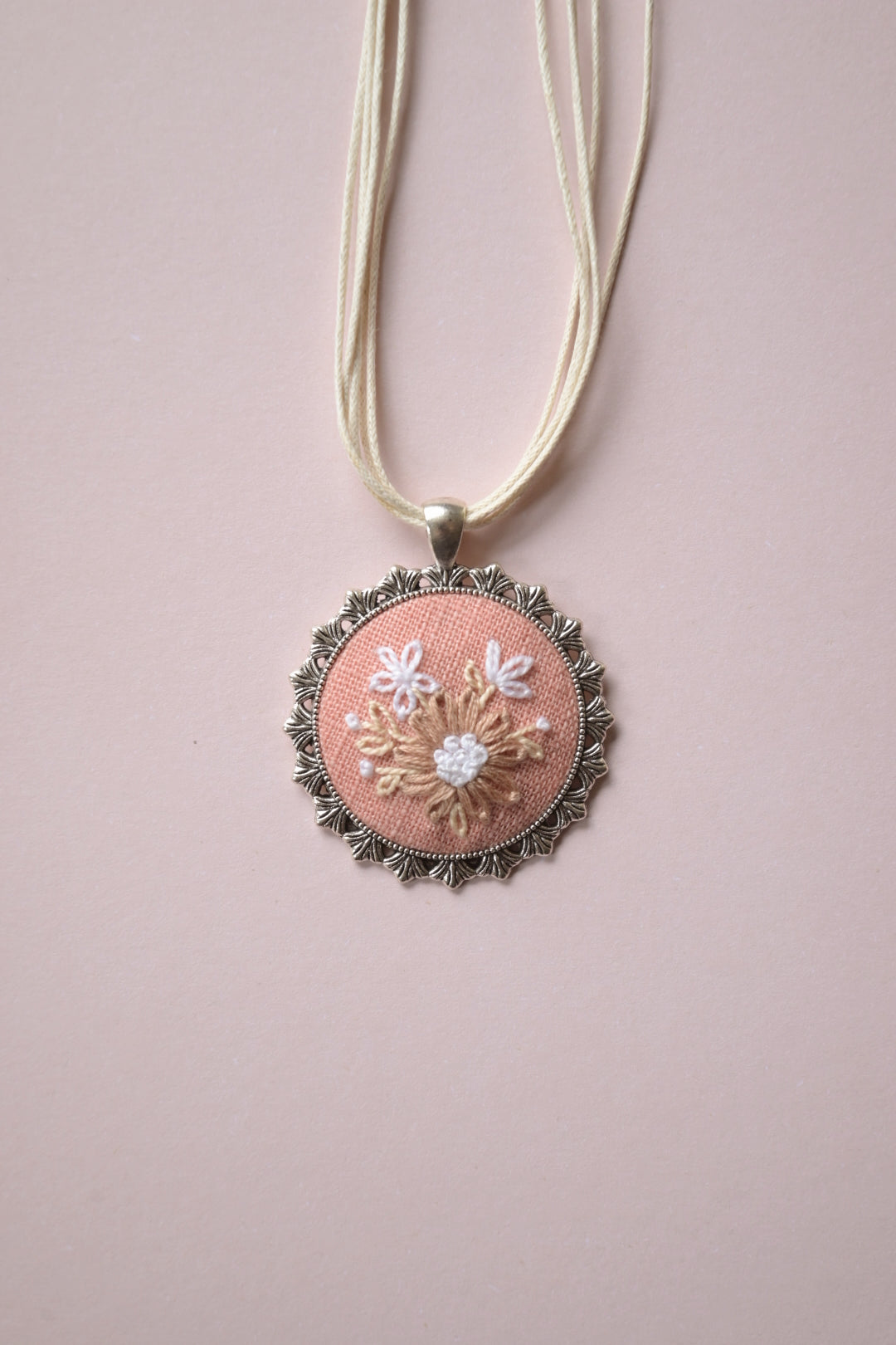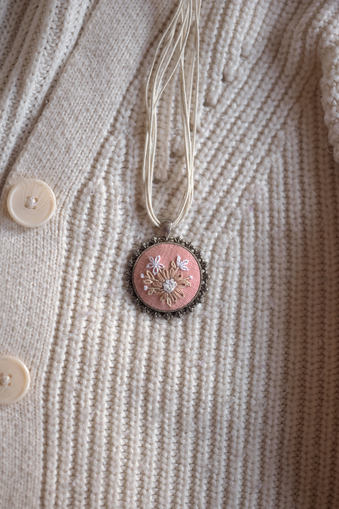 Ogrlica je napravljena od željeznog medaljona te se nalazi na 45cm dugoj ogrlici od tekstila koja se kopča iza vrata. Pamučni vez izrađen je na lanenom platnu.