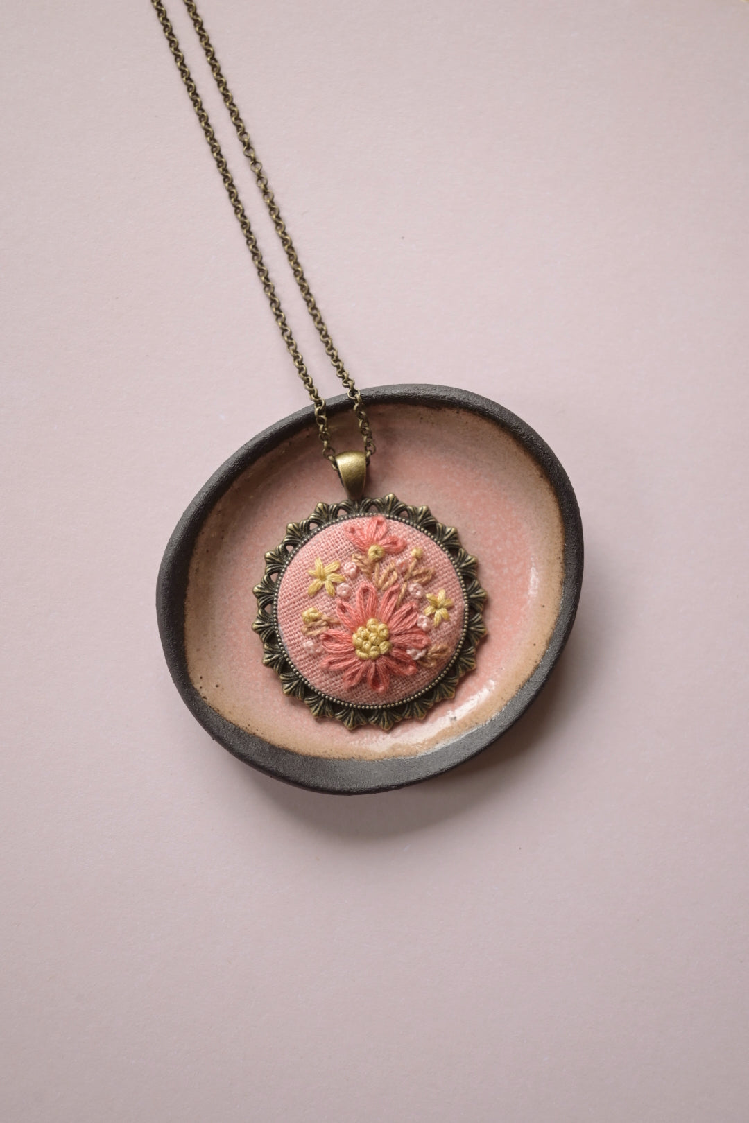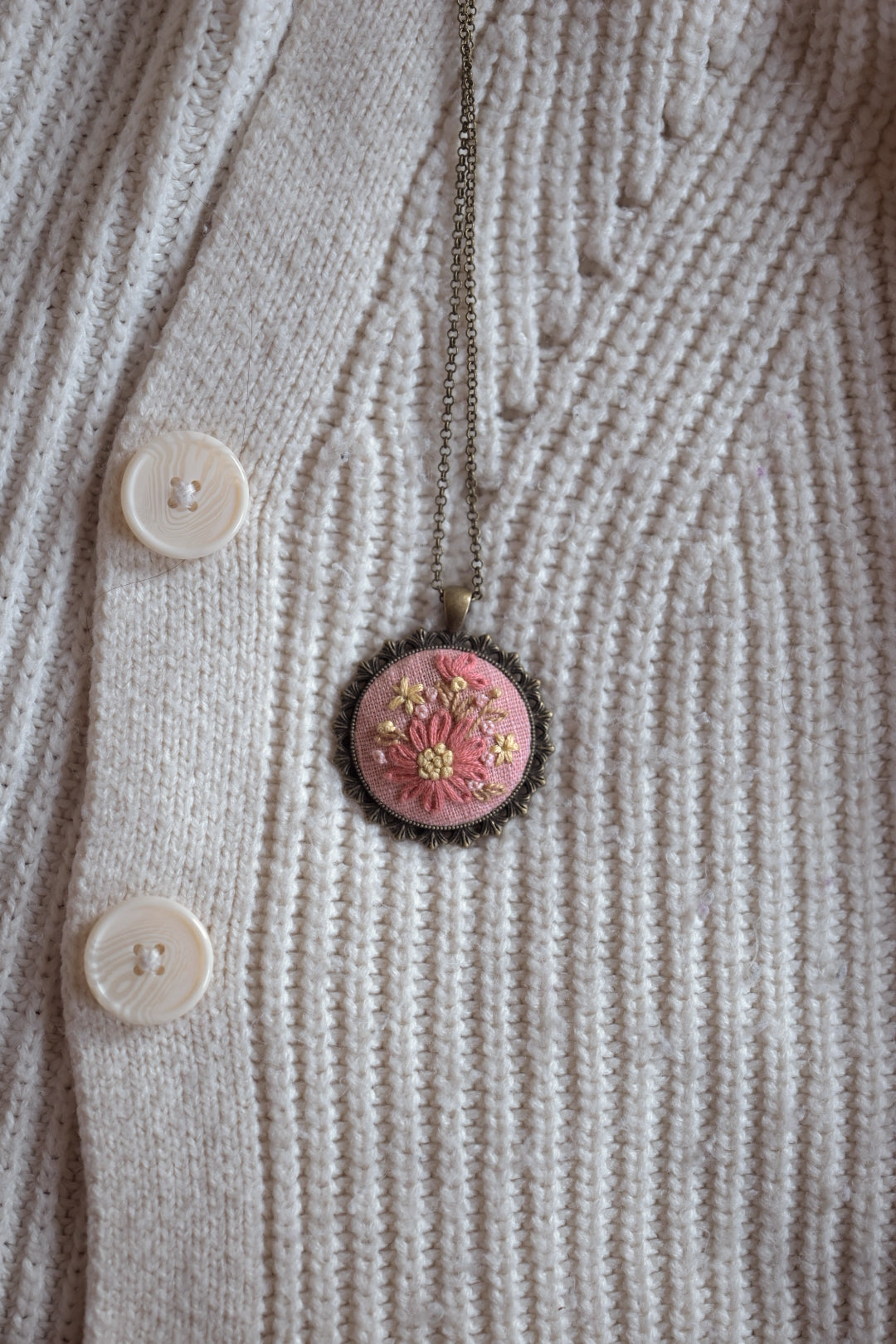 Ogrlica je napravljena od željeznog medaljona te se nalazi na 45cm dugoj ogrlici od čelika koja se kopča iza vrata. Pamučni vez izrađen je na lanenom platnu.